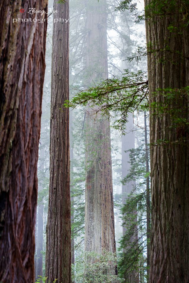 经历了冰期依然幸存,适应于美西海洋性气候的北美红杉林,仿佛超越了时间,在这片浓雾和苔藓中获得了永生。