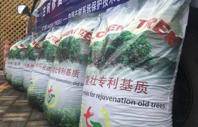 副标题:两名专业基质科研人员率领的技术团队,经过5年的多批次试验,成功研发的古树复壮专用基质正式生产