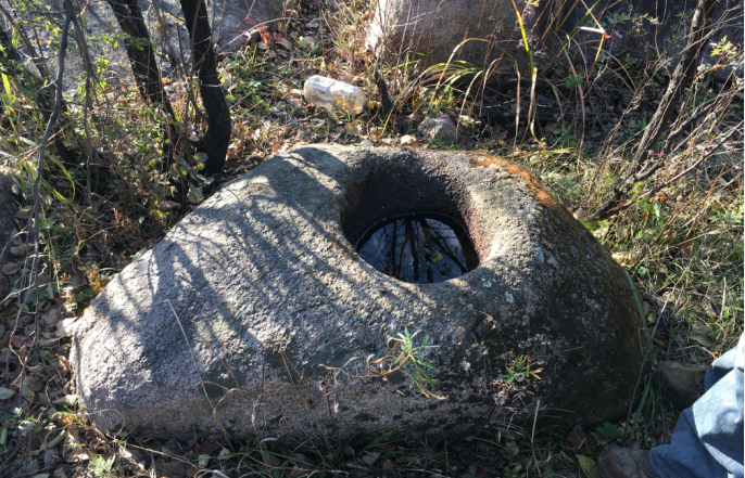 远古”粉碎机“石臼已经注满了雨水,但是依稀能感受到往昔这里繁忙的景象